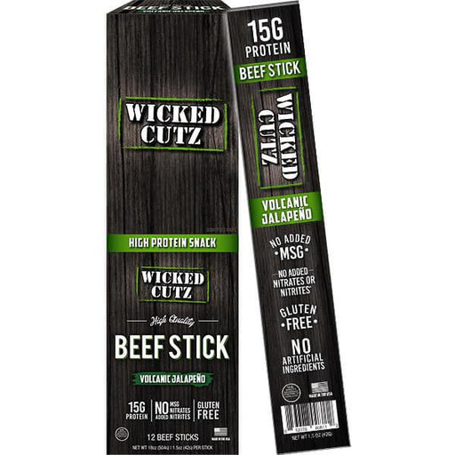 Box of Wicked Cutz Volcanic Jalapeno Beef Stick 12 Sticks