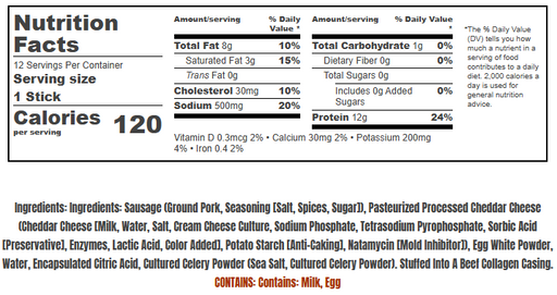 Nutmeg State NutritionIndulge in the perfect on-the-go snack with Wicked Cutz Sausage Egg & Cheese Pork Snack Sticks! Each box contains 12 sticks, each with 12g of p...