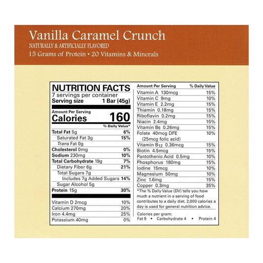 Introducing the Crisp and Crunch Vanilla Caramel Protein Meal Replacement Bar by Diet Protein to Go – a deliciously balanced blend of creamy ...