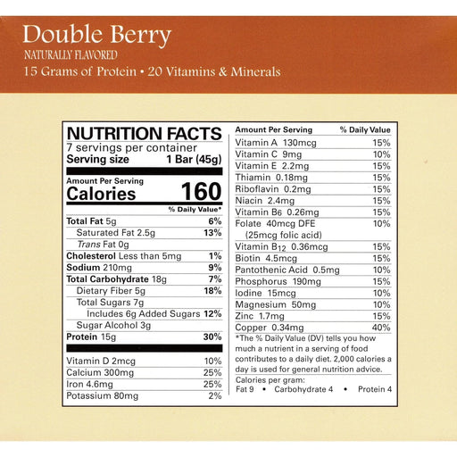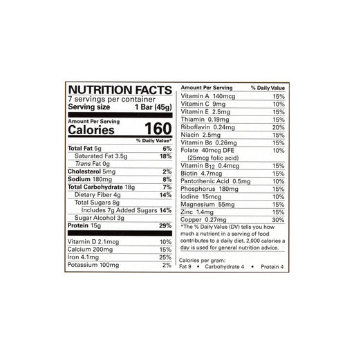 NUTRITION FACTS Serving Size: 1 Bar (60g) Servings Per Container: 12 Amount/Serving Calories 180Calories from Fat 70 %Daily Value* Total Fat 7...