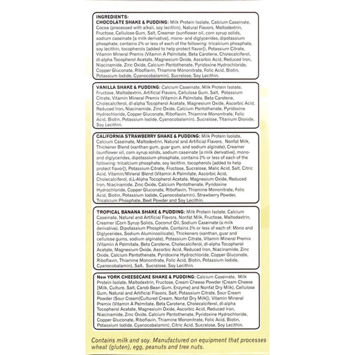 Ingredients: Milk Protein Isolate, Calcium Caseinate, Cocoa (processed with alkali, soy lecithin), Natural and Artificial Flavors, Maltodextrin, T...