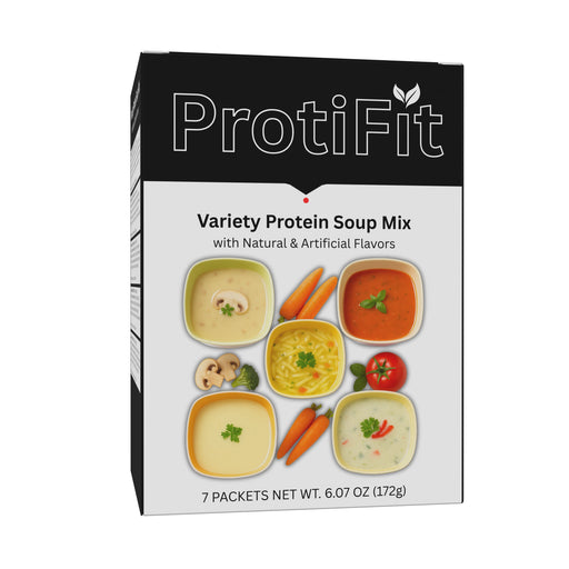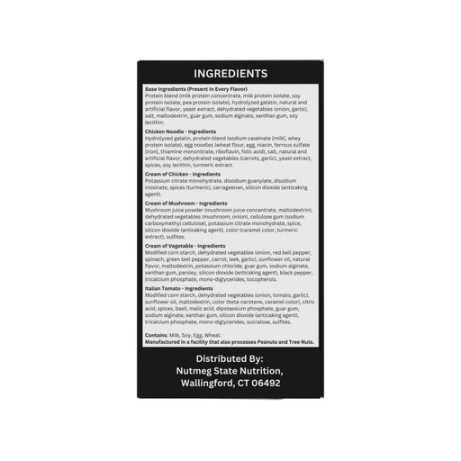 Nutmeg State Nutrition LLCProtiFit Variety Pack Soup delivers 15g of protein per serving with just a fraction of the calories and sugar found in traditional soups. Each box ...