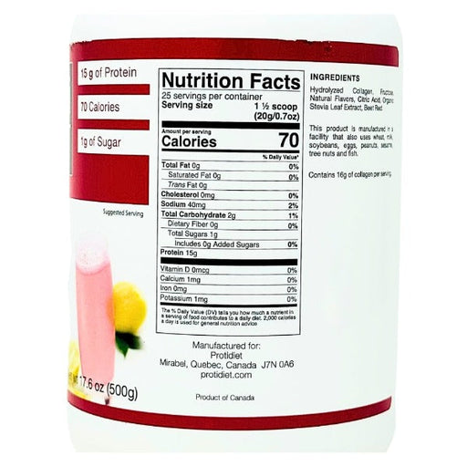 Enjoy ProtiDiet’s Pink Lemonade Collagen Drink, featuring 7 convenient servings per box. Each serving delivers 15 grams of protein, only 70 calor...