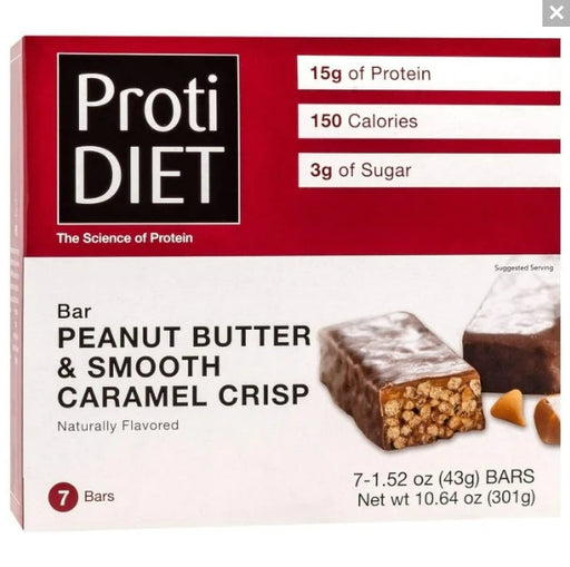 Introducing Proti Diet's Peanut Butter Smooth Caramel Crisp Flavored Protein Bar—a delightful blend of creamy peanut butter, smooth caramel, and cr...