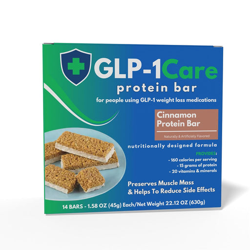 GLP-1CareNeed a delicious snack that won't disrupt your GLP-1 regimen? Try GLP-1Care Cinnamon Bars! These protein-packed bars are specifically designed to b...